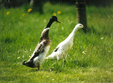 • Die indischen Laufenten brauchen täglich frisches Wasser – je mehr, je lieber – zB in einer flachen Wanne. Wenn für „die Zwei“ ein kleiner „Sumpf“, zB durch überlaufenden Schlauch angelegt wird, begeistert sie das sehr. Falls Sie ein Feuchtbiotop haben, halten sich die Enten fast nur im Wasser auf und fressen kaum Schnecken.